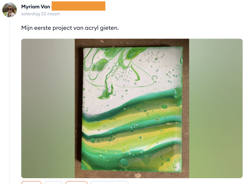 Acrylgieten wordt ook wel acryl pouring of fluid art genoemd. Dit is een schildertechniek waarbij verschillende kleuren acrylverf vermengd worden met een gietmedium en vervolgens op een canvasoppervlak gegoten worden. Door het canvas te kantelen, draaien of manipuleren ontstaan unieke patronen en kleureffecten, wat resulteert in levendige en abstracte kunstwerken. Gaaf toch?
